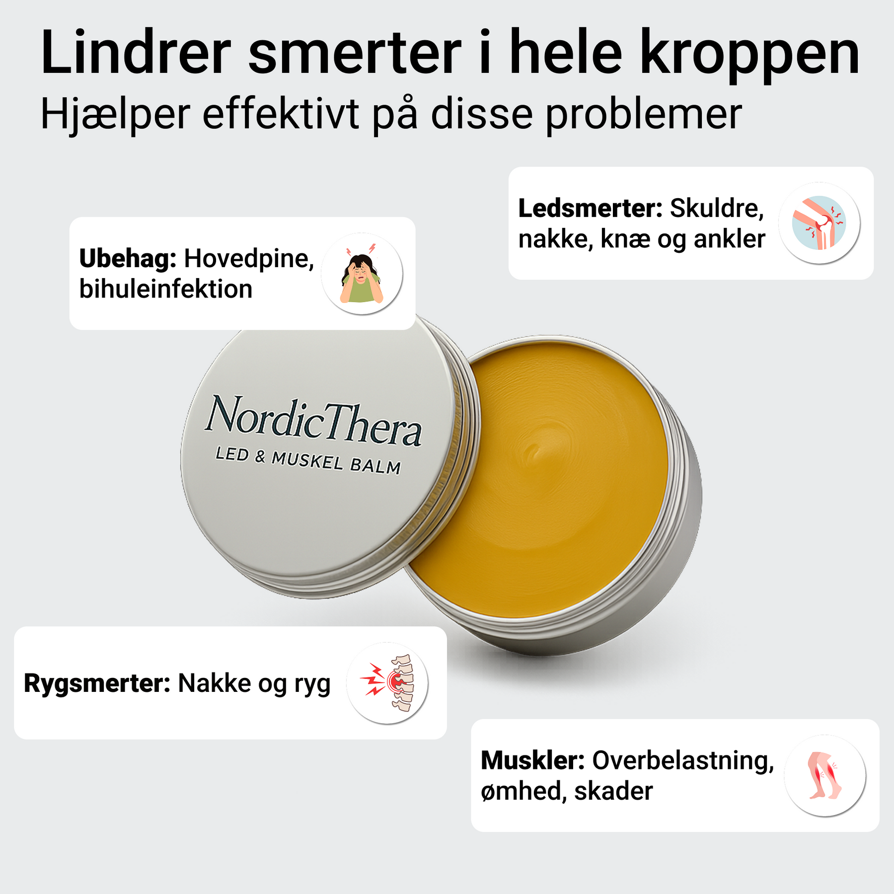 +Hurtigt absorberende og nem at påføre til målrettet smertelindring, arbejder NordicThera dybt i muskler, led og nerver for at lindre ubehag og støtte naturlig bevægelse – uden rod eller behov for piller.